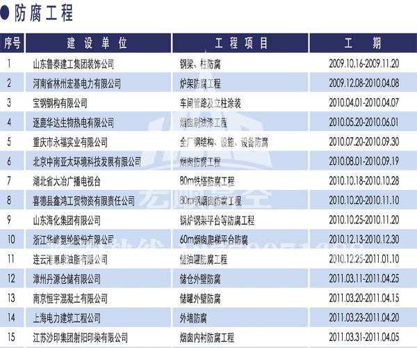 宏順建設(shè)核心技術(shù) 宏順建設(shè)專業(yè)防腐各種水塔防腐,儲(chǔ)油罐防腐,管道防腐,吊機(jī)防腐,龍門吊防腐,水泥筒倉(cāng)防腐工程,有多年的成功經(jīng)驗(yàn),施工業(yè)績(jī)遍布全國(guó)各地... 了解詳情
